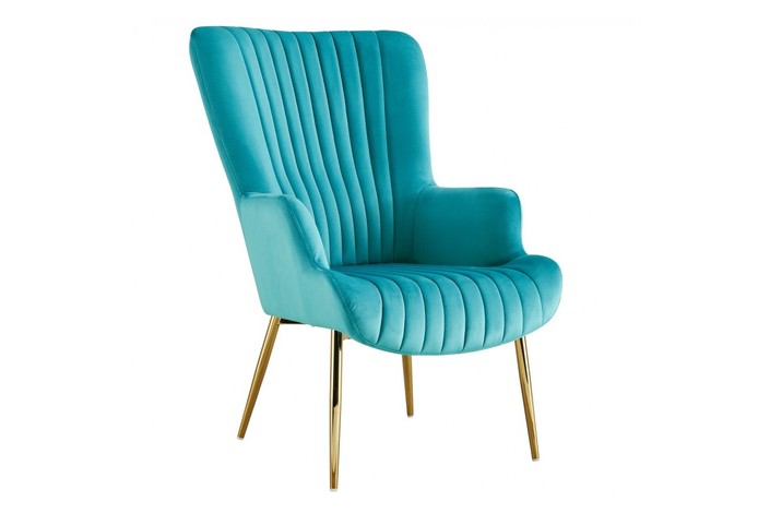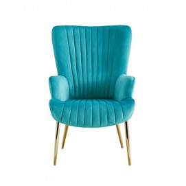 Sillón LILLE, patas doradas, tapizado velvet turquesa