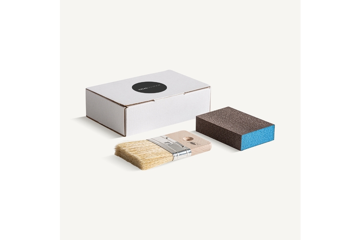 Diseñado con el cuidado y la atención que caracteriza a VICAL, este set esencial combina funcionalidad y estética en una experiencia de mantenimiento única. La paletina de cerdas naturales y la esponja de lija permiten renovar y proteger tus piezas de exterior con mimo, devolviéndoles su esplendor original. Presentado en una cuidada caja, este kit invita a reconectar con el valor de lo artesanal y a alargar la vida de aquello que nos acompaña en cada estación. Un gesto sencillo que habla de compromiso, sensibilidad y respeto por los materiales nobles. Porque cuidar también es una forma de cre