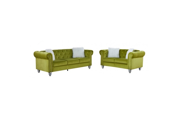 Set Sofás CHESTER STYLE, 3 +2 plazas, tapizado velvet verde 38