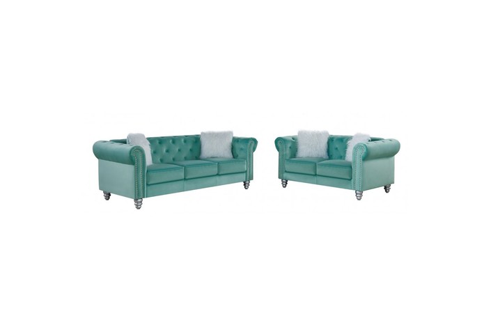 Set Sofás CHESTER STYLE, 3 +2 plazas, tapizado velvet verde agua 58