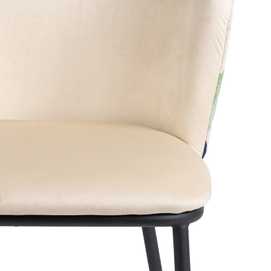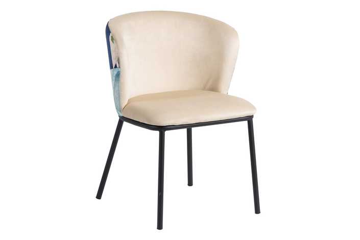 Material: Tejido (100% poliéster). Patas de acero, para montar. Altura asiento: 46m. Altura patas: 38.5cm. Altura respaldo: 34cm. Profundidad asiento: 46cm. Ancho asiento: 52cm. Las posibles sombras o marcas en el tejido son debidas al embalaje de las piezas. Desapareciendo fácilmente con la aplicación de vapor. Cumple normativa: EN16139:2013 No apilable.