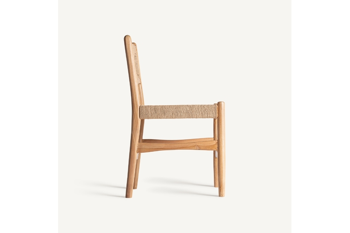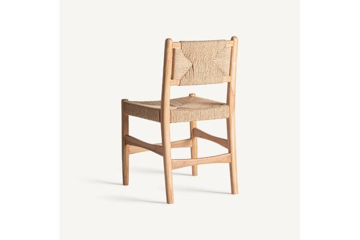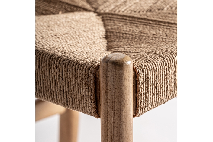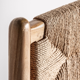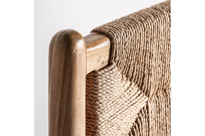 Silla agia, en color marrón, de estilo contemporáneo. Fabricado en madera de teka, combinado con cáñamo.