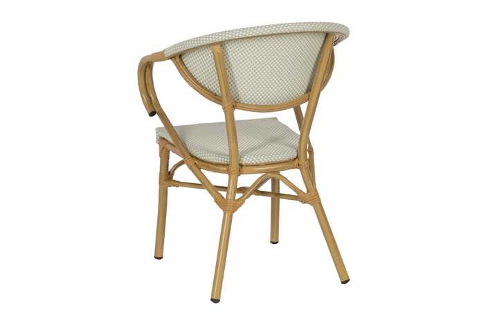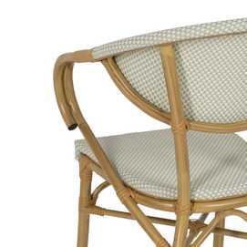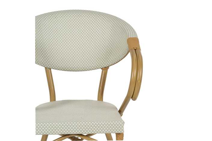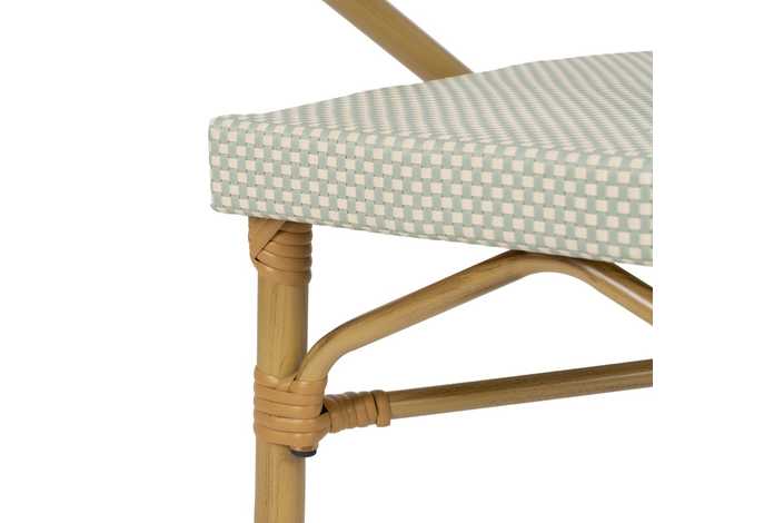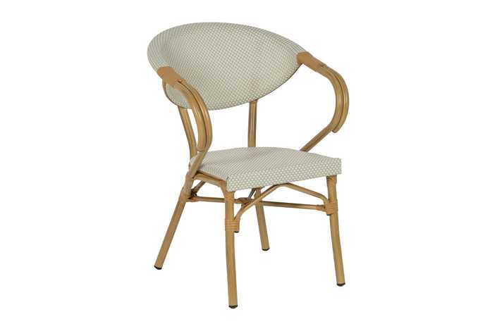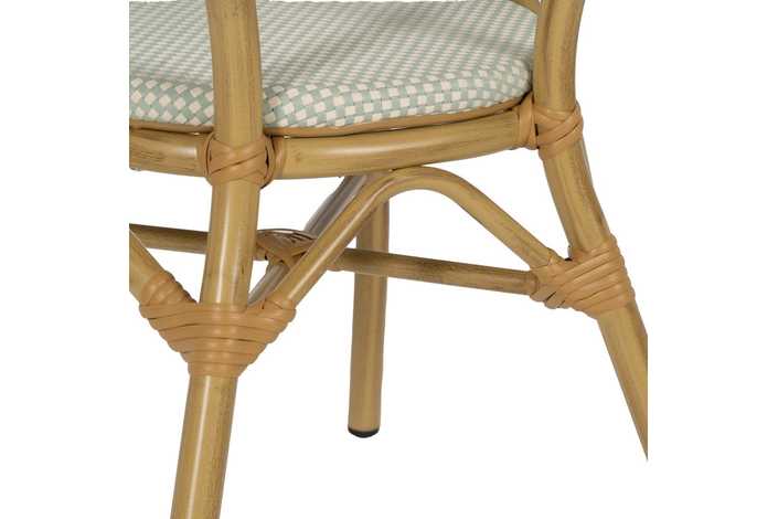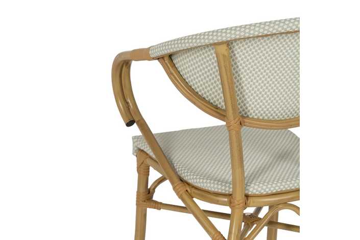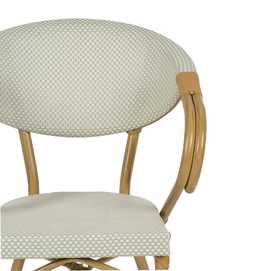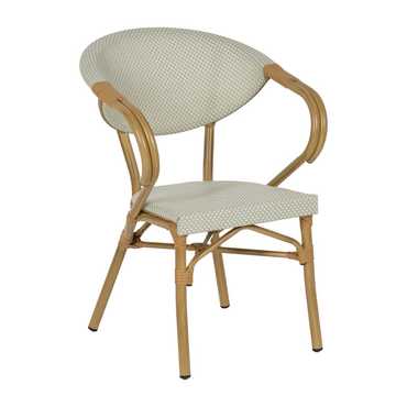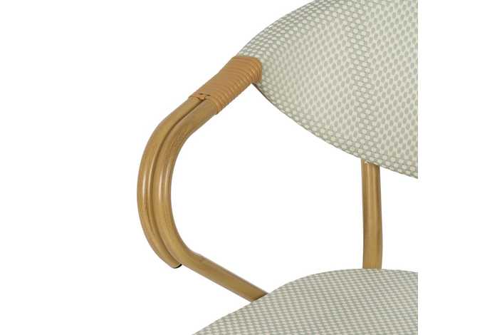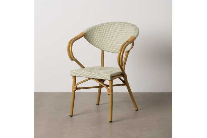 Material: aluminio, textileno. Altura asiento: 43cm. Ancho asiento: 40cm. Profundidad asiento: 42cm. Altura respaldo: 43cm. Altura reposabrazos: 28cm (71cm desde el suelo).