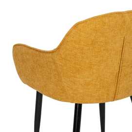 Tejido: Poliéster. Relleno:foam Densidad del relleno: 28kg/m3. Material de las patas: Hierro Altura del asiento:47cm Altura de las patas:42cm. Altura del respaldo: cm. Medidas del asiento: cm. Distancia entre las patas: cm. Peso máximo soportado:140kgs. No apilable. No necesita montaje. Cumple normativa EN16139:2013 (Catering).