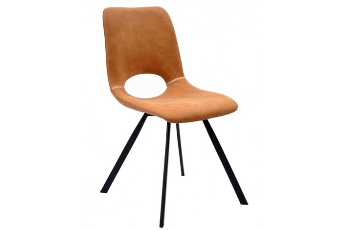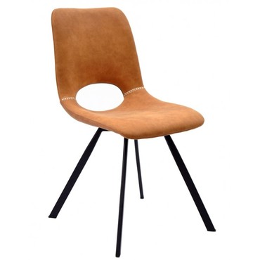 Silla de diseño, armazón metálico con acabado epoxi negro, asiento y respaldo tapizados en similpiel de color marrón claro. Taburete a juego. Otros colores disponibles.