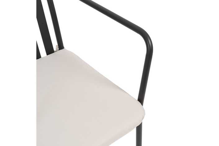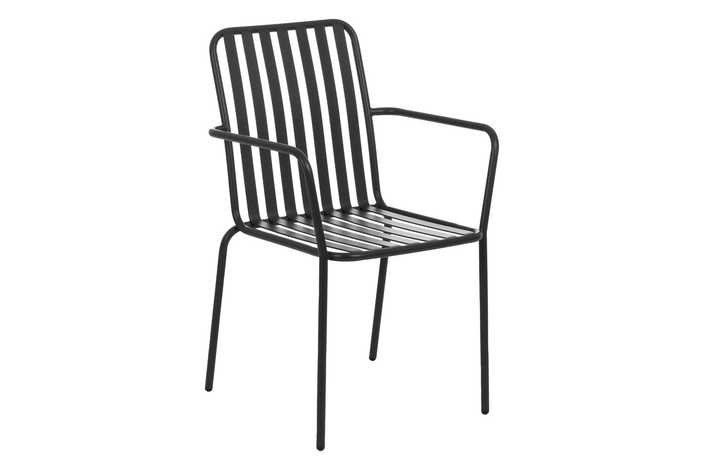 Material: acero. Altura asiento: 44cm. Ancho asiento: 41,5cm. Profundidad asiento: 45cm. Altura respaldo: 42,5cm. Altura reposabrazos: 20cm. Apilable.