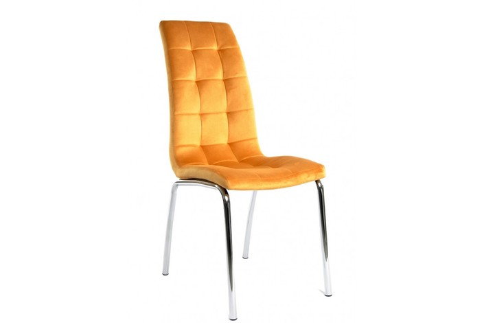 Silla AROA, cromada, tapizada velvet amarillo