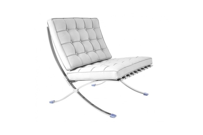 Silla de diseño, acero inoxidable, piel top blanca