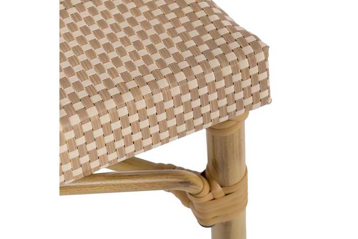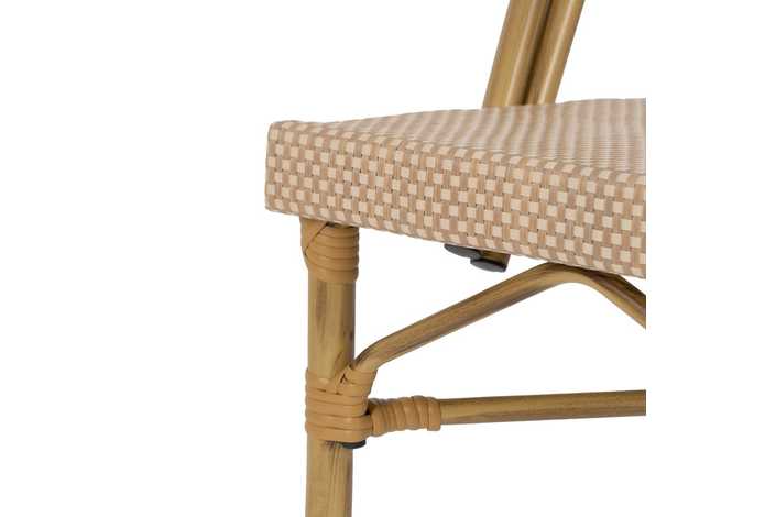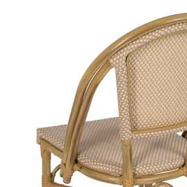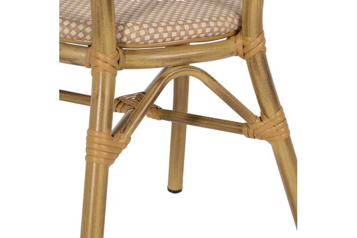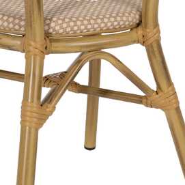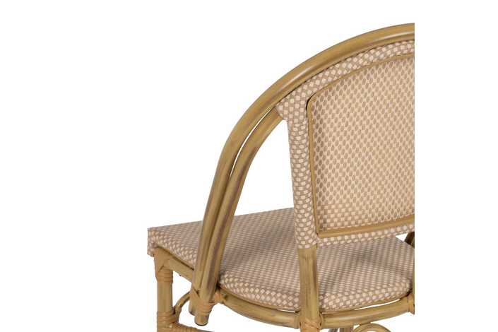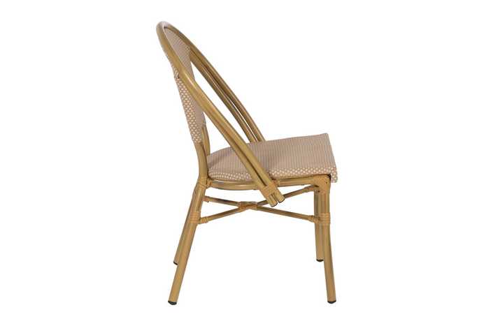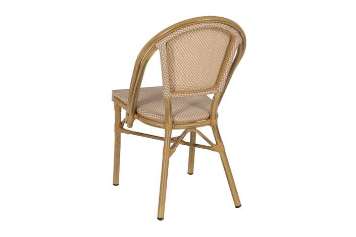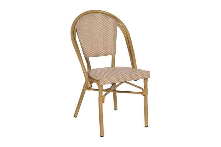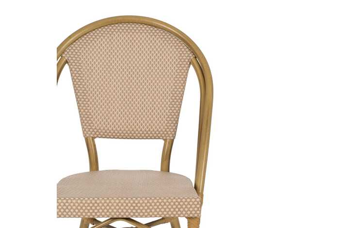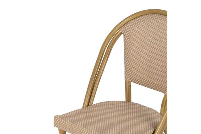 Material: aluminio, textileno. Altura asiento: 45cm. Ancho asiento: 41cm. Profundidad asiento: 42cm. Altura respaldo: 47cm. Apilable.