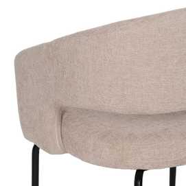 Tejido: Poliéster. Relleno:foam Densidad del relleno: 28kg/m3. Material de las patas: Hierro Altura del asiento:48cm Altura de las patas:42cm. Altura del respaldo: 34 cm. Distancia entre las patas: 57 cm. Peso máximo soportado:140kgs. No apilable. No necesita montaje. Cumple normativa EN16139:2013 (Catering).