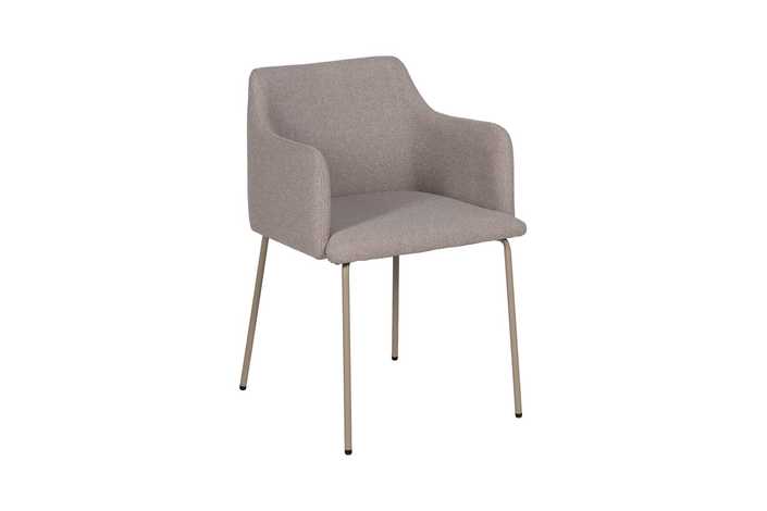 Material: tejido (poliéster), metal. Altura asiento: 47cm. Altura respaldo: 32cm. Profundidad asiento: 44cm. Ancho asiento: 42,5cm. Altura reposabrazos: 20cm. Cumple la normativa EN12520 (uso doméstico). No apilable.