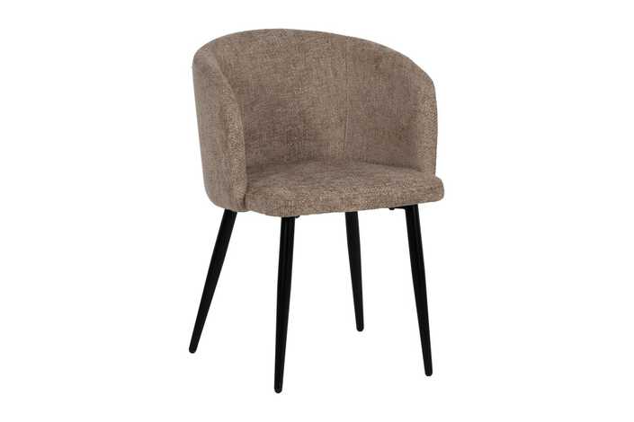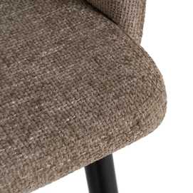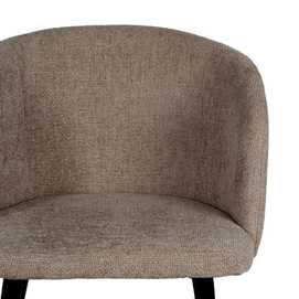 Material: tejido (100% poliéster), metal. Relleno: foam, densidad 24kg/m3. Altura asiento: 46cm. Ancho asiento: 44cm. Profundidad asiento: 43,5cm. Altura respaldo: 32cm. Peso máximo soportado: 120kgs. No apilable.