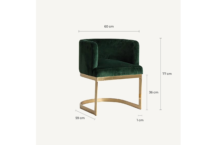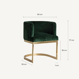 La Silla Betliar de VICAL home, una obra maestra de la elegancia. Con su tapizado en terciopelo verde, estructura en madera de mango y patas de acero, este sillón de 60x60x77cm combina lujo y comodidad. Su diseño tipo sillón, junto con la suavidad del terciopelo, invita a largos momentos de relajación en un entorno lleno de sofisticación.