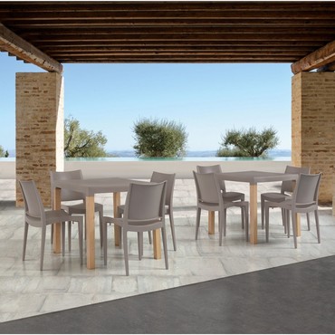 Silla de diseño, apilable, polipropileno inyectado de color beige, reforzada con fibra de vidrio. Tratamiento anti rayos UV. Uso en exterior e interior. Otros colores disponibles.