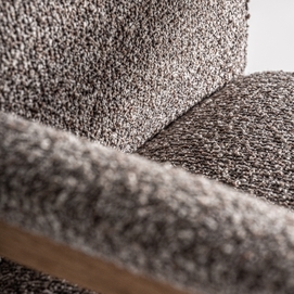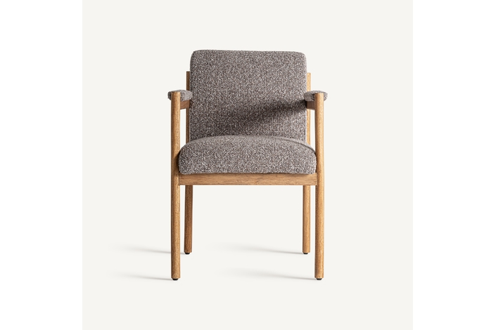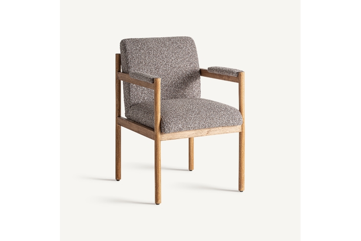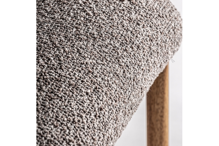 Silla bezier, en color gris/natural, de estilo colonial. Fabricado en poliéster, combinado con madera de caucho y espuma.
