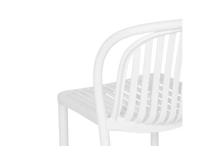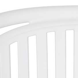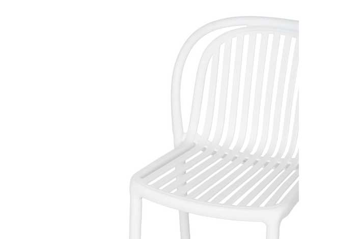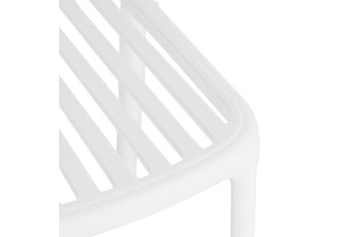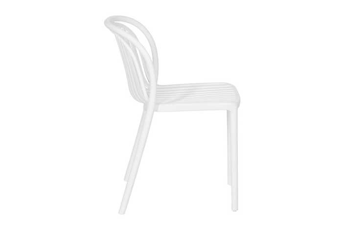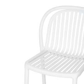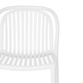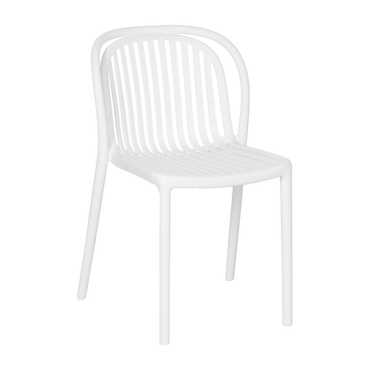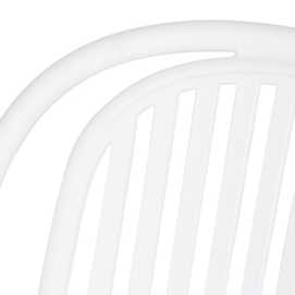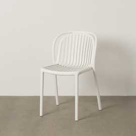 Material: polipropileno. Altura del asiento: 45cm. Ancho asiento: 41,5cm. Profundidad asiento: 42cm. Altura respaldo: 36cm. Apilable. Cumple la normativa EN581 (uso exterior).