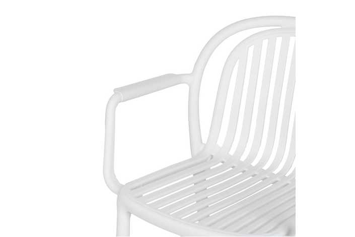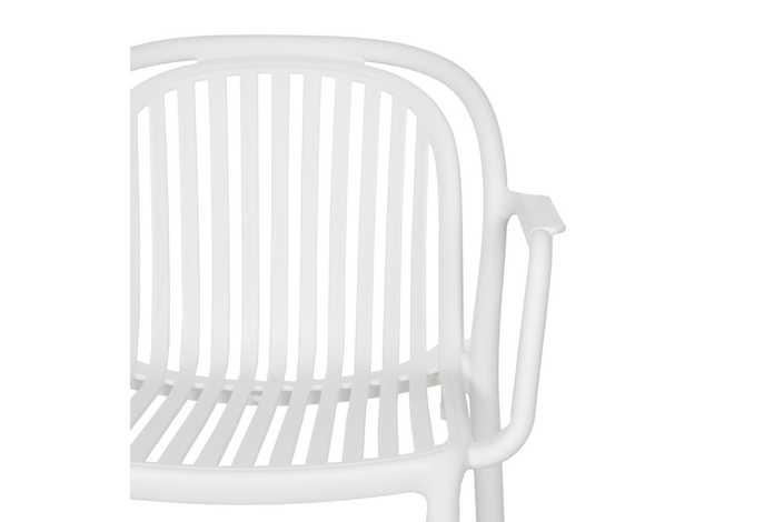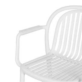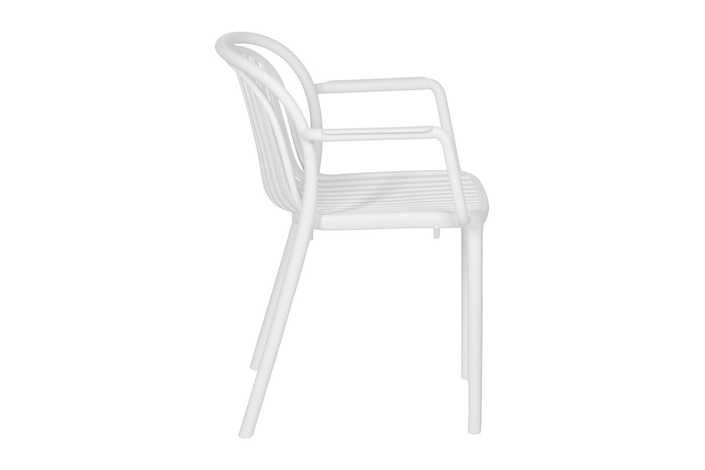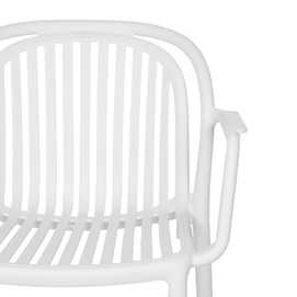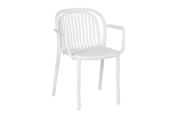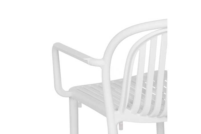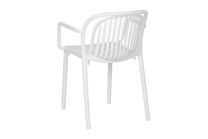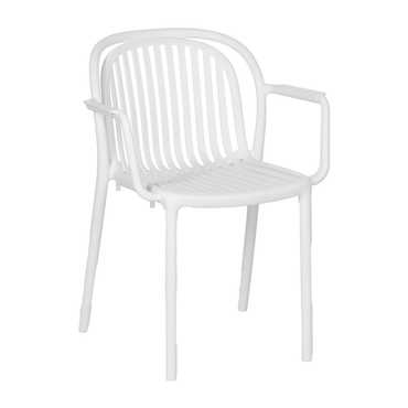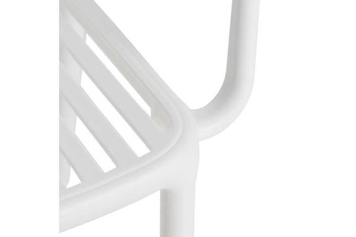 Material: polipropileno. Altura del asiento: 45cm. Ancho asiento: 41,5cm. Profundidad asiento: 42cm. Altura respaldo: 36cm. Apilable. Cumple la normativa EN581 (uso exterior).