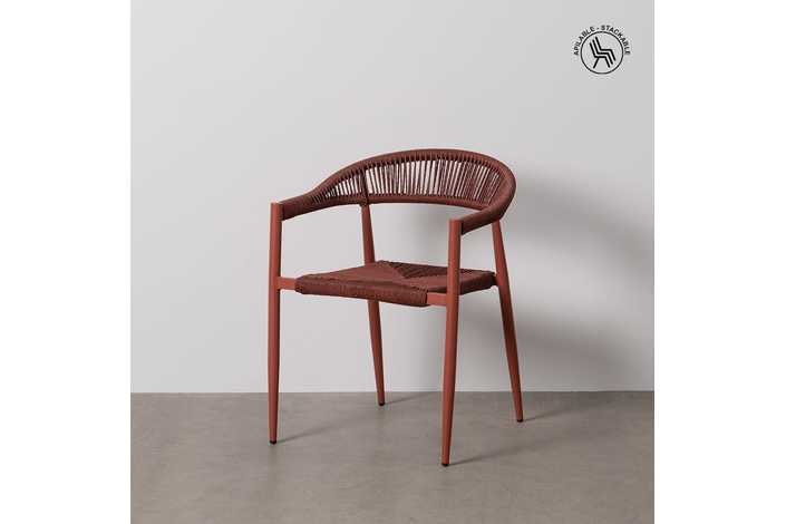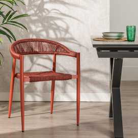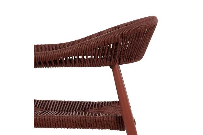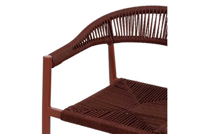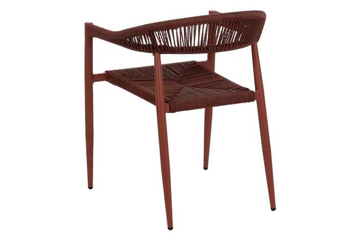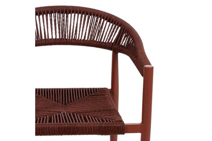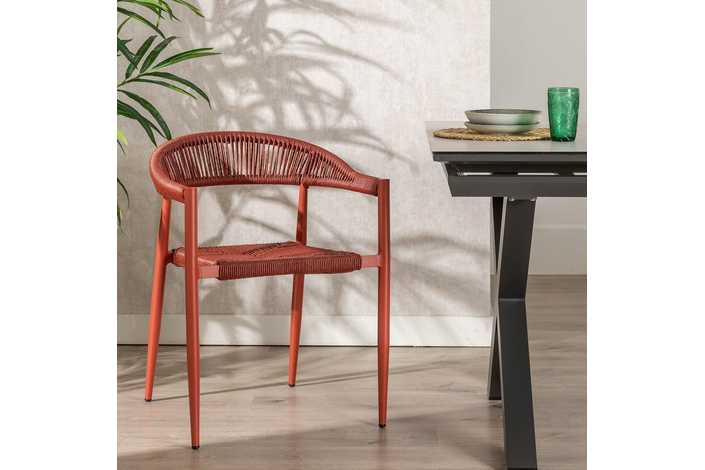 Material: polietileno, aluminio. Altura asiento: 46cm. Ancho asiento: 38cm. Profundidad asiento: 45,5cm. Altura respaldo: 31cm. Apilable. Cumple la normativa EN581 (uso exterior).
