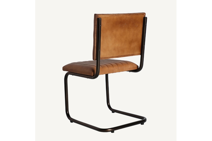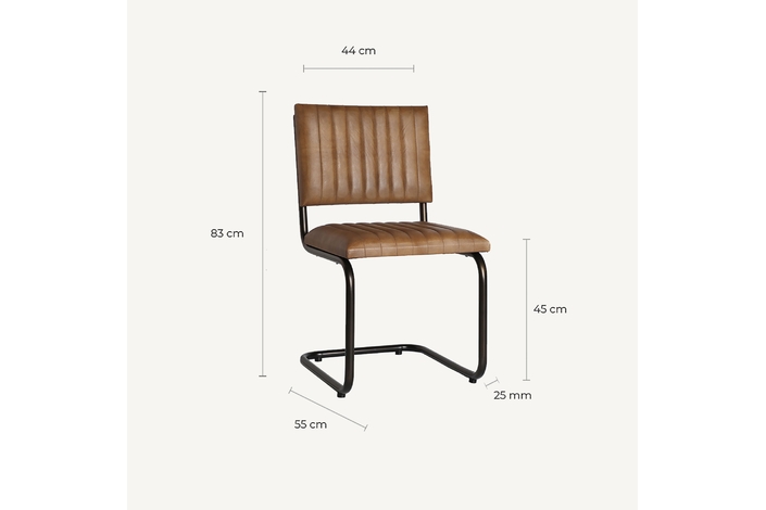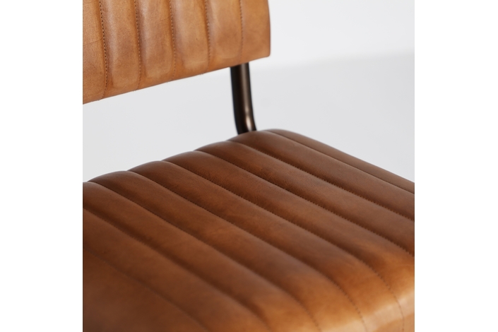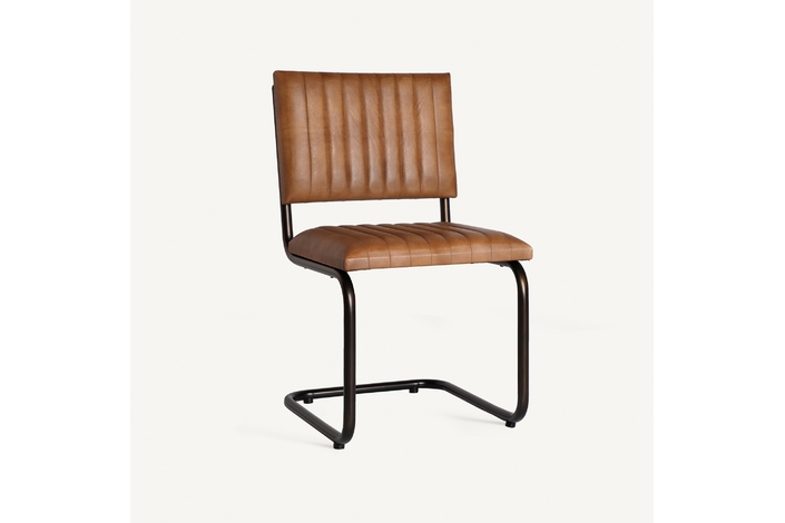 La Silla Chadron de VICAL home, con su estructura de hierro y asiento de cuero de cabra en color marrón, promete convertirse en la protagonista de cualquier espacio. Las medidas de la silla de cuero y metal de 44x56x85cm ofrecen una postura cómoda, mientras que su diseño aporta un toque industrial y sofisticado a tu hogar.