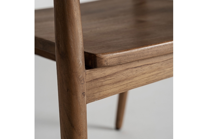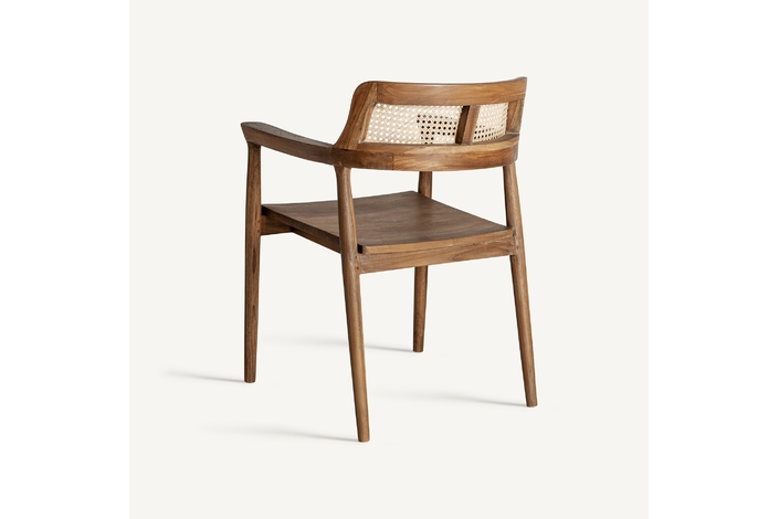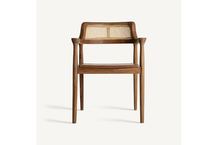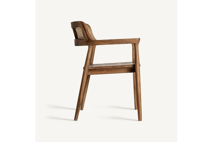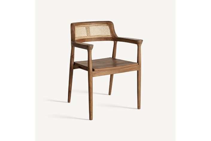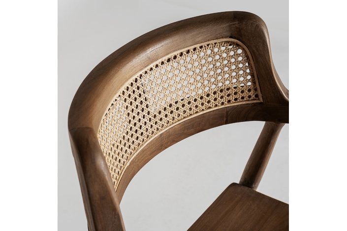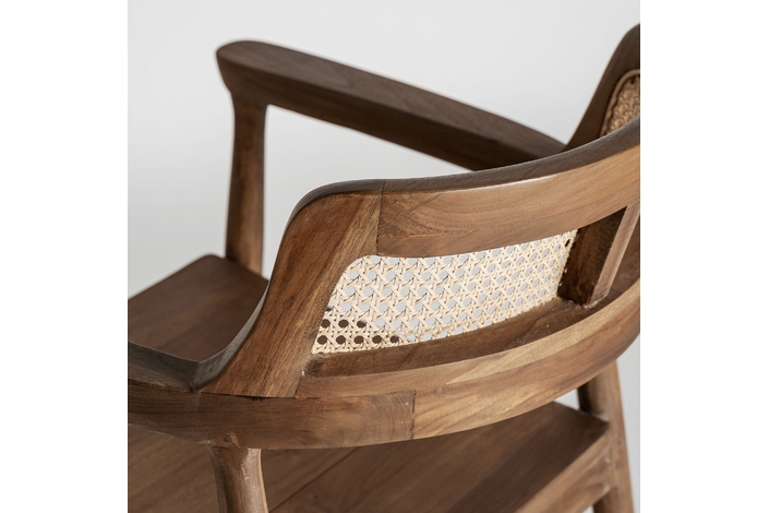 Silla chanac, en color marrón, de estilo art deco. Fabricado en madera de teka, combinado con ratán.