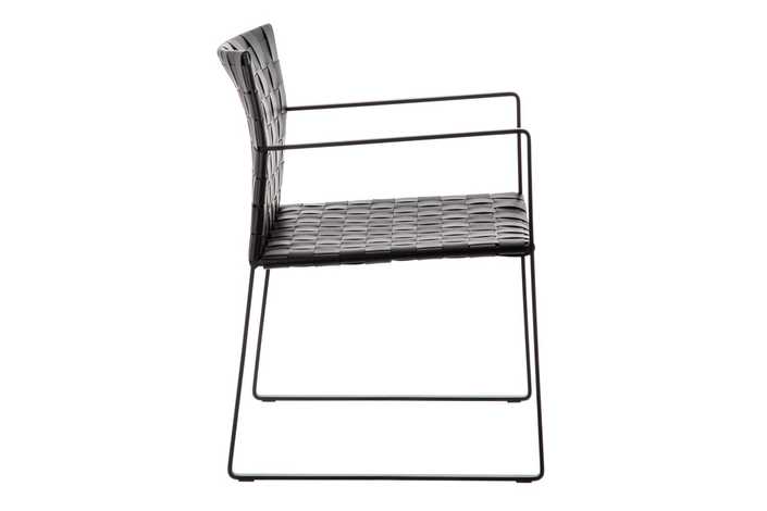 Material: Piel reciclada, metal. Altura asiento: 42cm. Ancho asiento: 61.5cm. Profundidad asiento: 48.5cm. Altura reposabrazos: 63cm. Altura pata: 40cm..