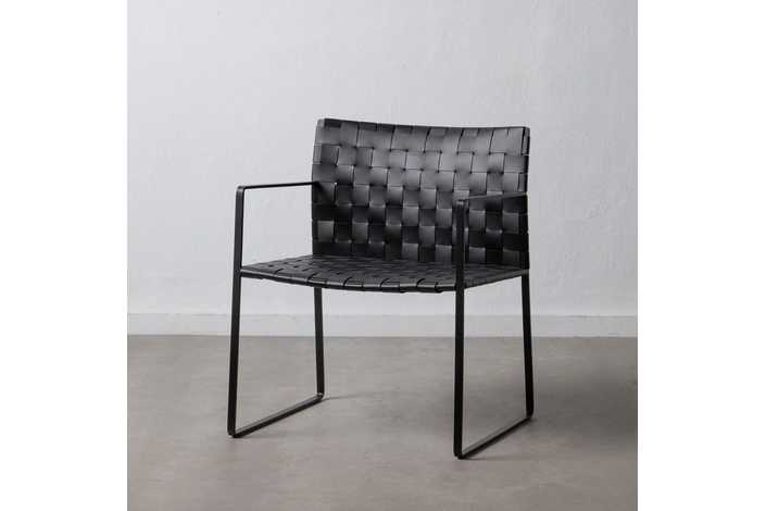 SILLA CON BRAZO NEGRO METAL / PIEL 60,50 X 57,50 X 77 CM