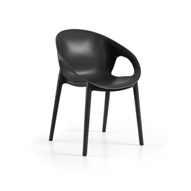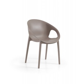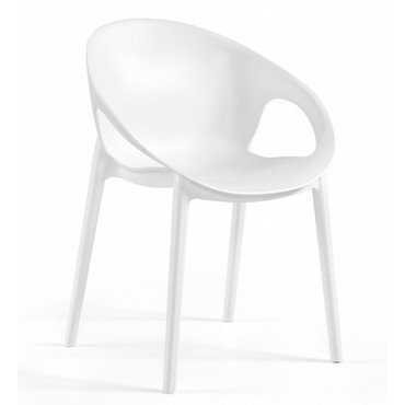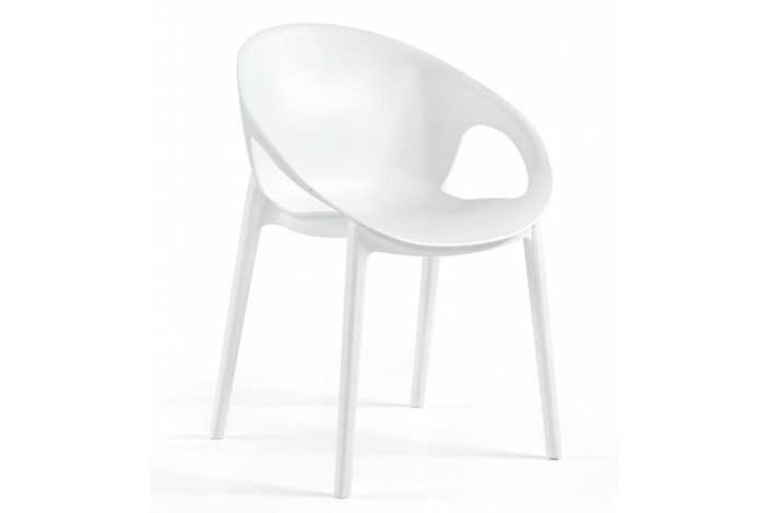 Silla de diseño, apilable, polipropileno inyectado de color blanco, reforzada con fibra de vidrio. Tratamiento anti rayos UV. Uso en exterior e interior. Otros colores disponibles.