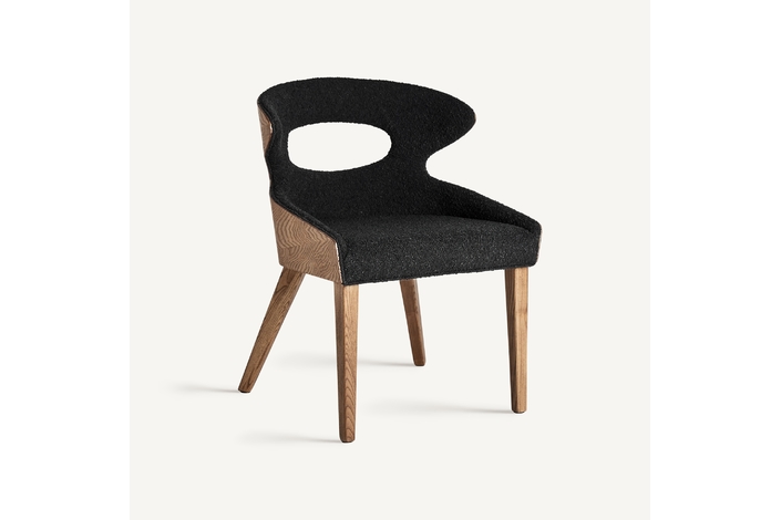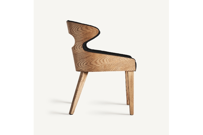 Silla crissey, en color negro, de estilo art deco. Fabricado en madera de fresno, combinado con poliéster.