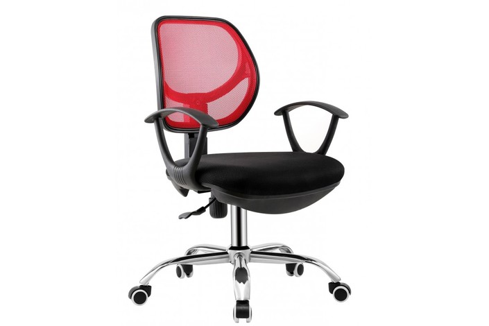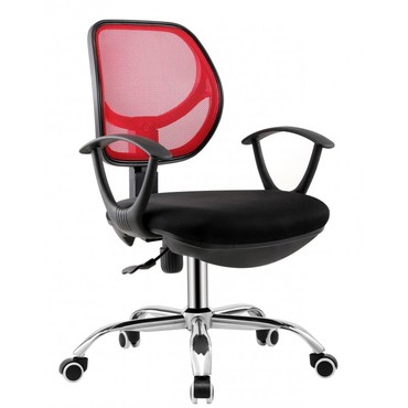 Silla de oficina, brazos, gas, contacto permanente, malla roja, tejido negro