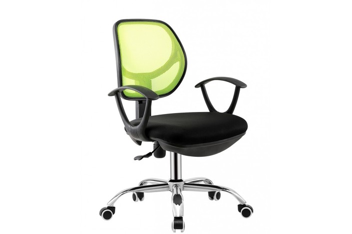 Silla de oficina MIRAFIORI, brazos, malla verde y tejido negro