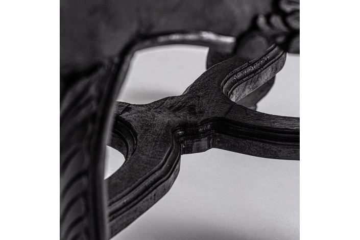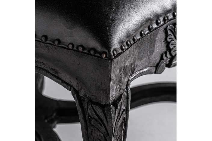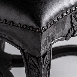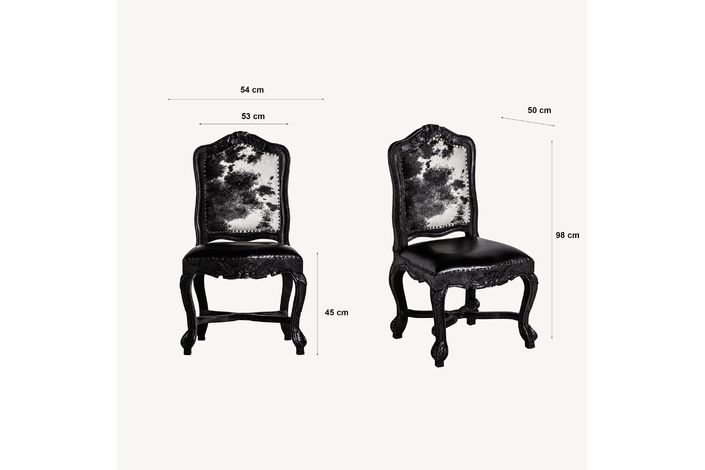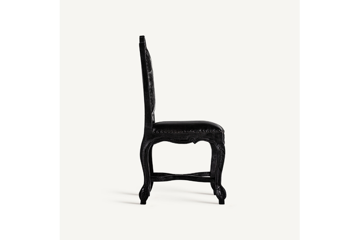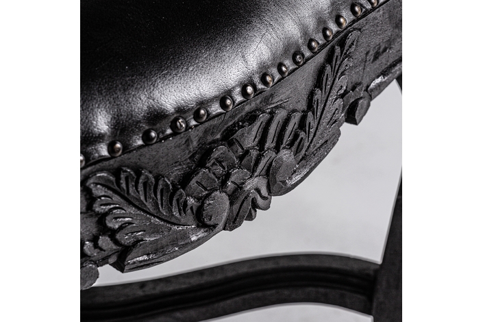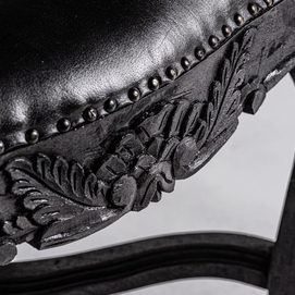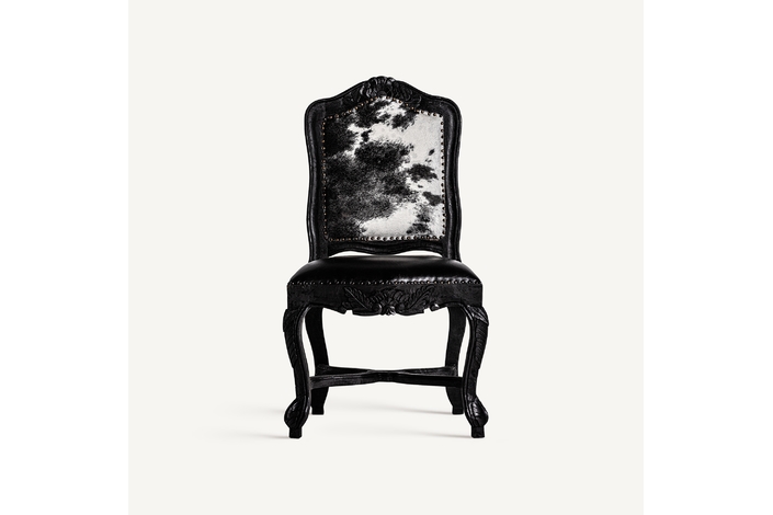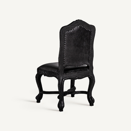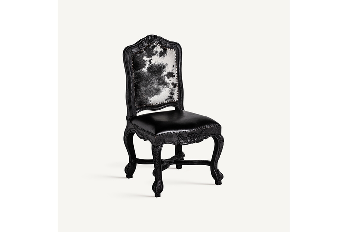 Silla delft, en color negro/blanco, de estilo clásico. Fabricado en madera de mango, combinado con cuero cabra y espuma.