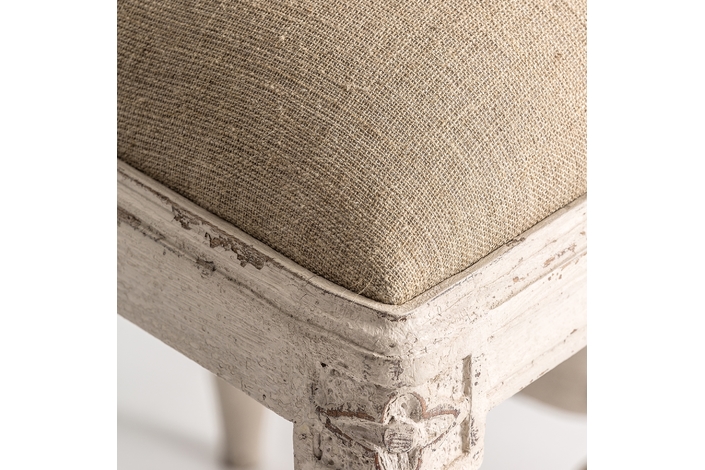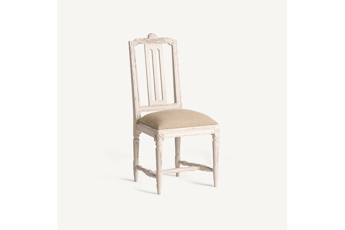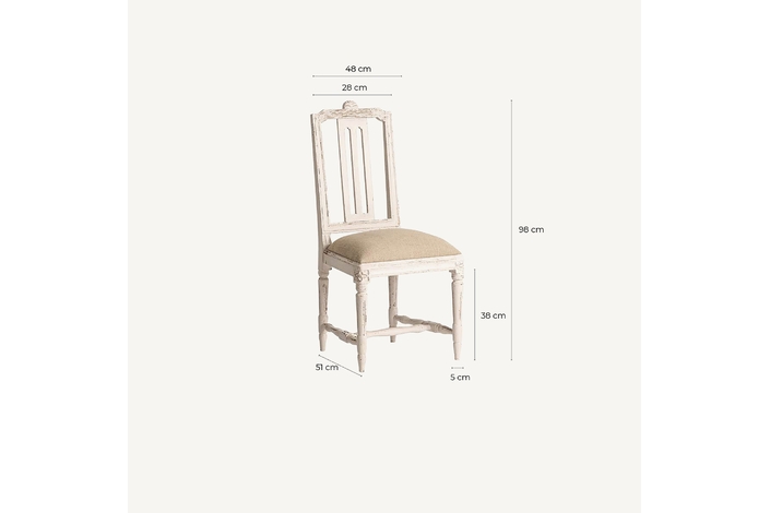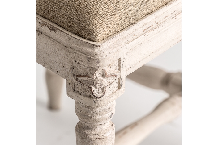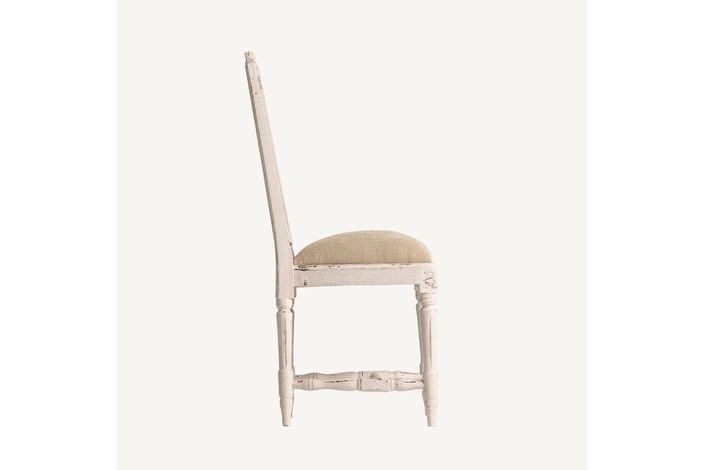 Silla dollot, en color beige, de estilo provenzal. Fabricado en madera de mango, combinado con algodón y lino.