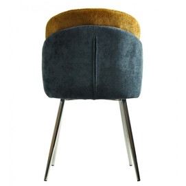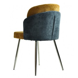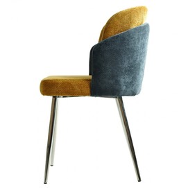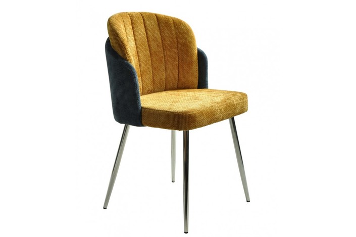 Silla moderna, cromada, tapizada chenilla azul y amarillo. Otros colores disponibles