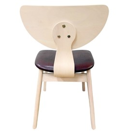 Silla de diseño, multiusos, contrachapado de madera de hevea, barnizado natural, similpiel marrón. Taburete a juego