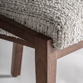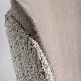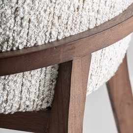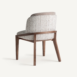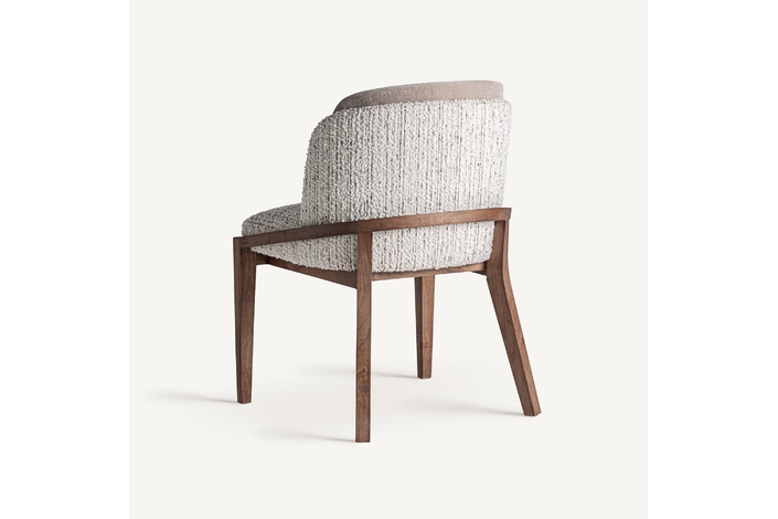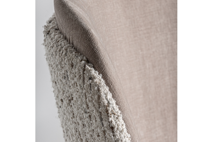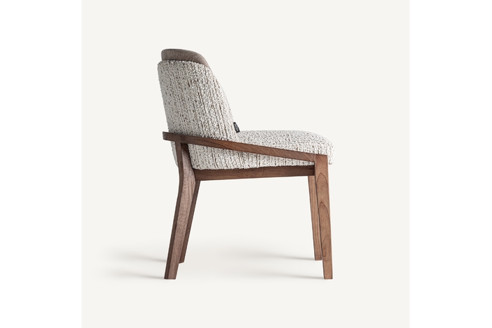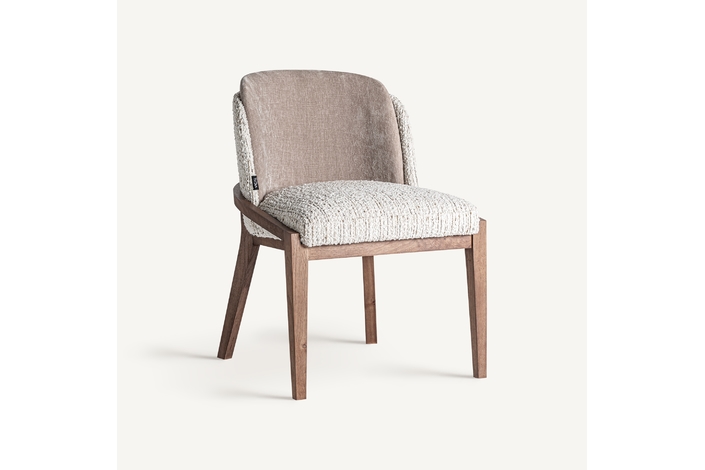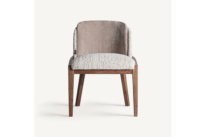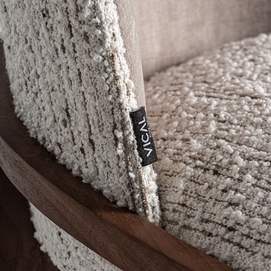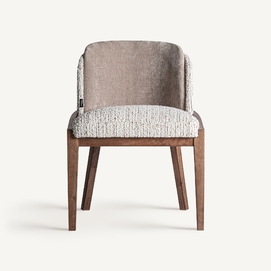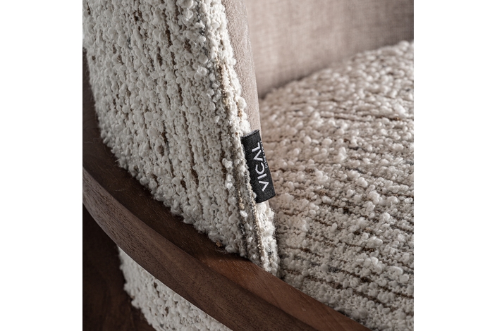 Silla erbach de estilo art deco, fabricado en madera de caucho en color marrón, combinado con poliéster en color beige con acabado jaspeado y espuma en color blanco roto.