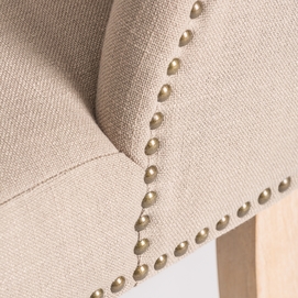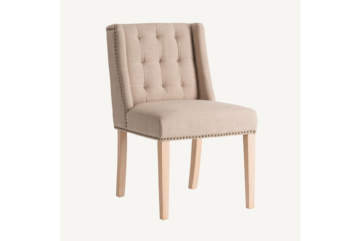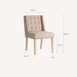La Silla Erfurt de VICAL home no es una silla común. Además de su cómodo acolchado y su suave loneta en color arena, cuenta con un detalle único: un elegante gancho redondo dorado en la parte posterior que invita a la distinción. Con medidas de 53x58x87cm, esta silla acolchada combina funcionalidad y un diseño exquisito.