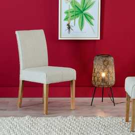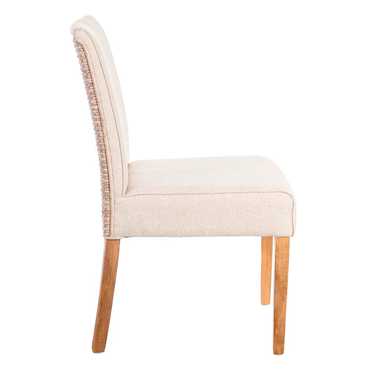 SILLA RATÁN TAPIZADO EN TELA BEIGE, ESTRUCTURA EN CAOBILLA Y PATAS EN MADERA DE MANGO SVLK (madera certificada que garantiza una utilización forestal sostenible y responsable) Altura del asiento: 48,5cm. Profundidad asiento: 45cm. Medida pata: 35cm. Cumple la normativa EN12520 (uso doméstico).