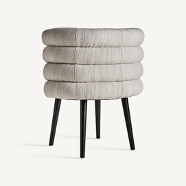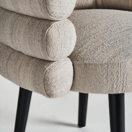 Silla finnoy, en color blanco roto, de estilo art deco. Fabricado en terciopelo, combinado con acero.