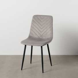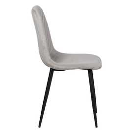 No apilable. Peso máximo soportado 145kg. Altura del respaldo: 47cm. Profundidad del asiento: 39cm. Altura del asiento: 49cm. Altura de las patas: 45,5cm. Ancho entre patas: 41cm. Tejido 100% poliéster. Relleno de foam con densidad de 200gm. Patas de hierro y estructura de DM. Cumple la normativa UNE-EN 16139:2013.