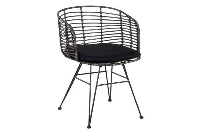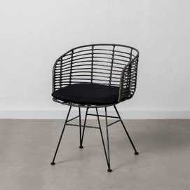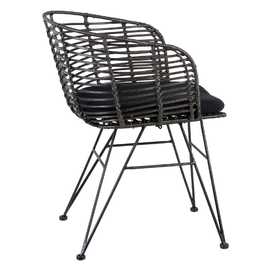 Material: Ratán, hierro. Material: Ratán, hierro. Altura asiento: 44cm. Altura asiento incluyendo el cojín: 49cm. Ancho asiento: 45cm. Profundidad asiento: 47cm. Altura respaldo: 32cm. Altura reposabrazos: 24cm. Cojín desenfundable, tejido 100% poliéster.