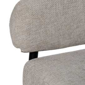 Tejido: Poliéster. Relleno:foam Densidad del relleno: 28kg/m3. Material de las patas: Hierro Altura del asiento:46cm Altura de las patas:40cm. Altura del respaldo: 33cm. Distancia entre las patas: 60 cm. Peso máximo soportado:140kgs. No apilable. No necesita montaje. Cumple normativa EN16139:2013 (Catering).
