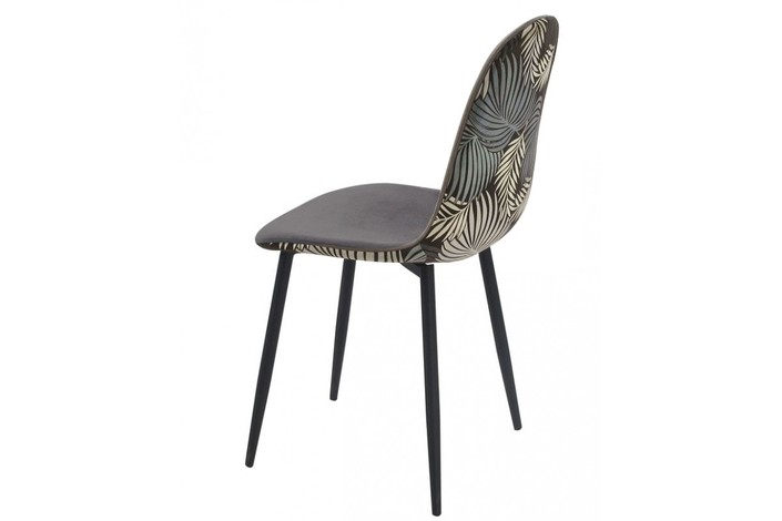 Silla HORUS NEW, metal, tapizado velvet gris con trasera floral a juego