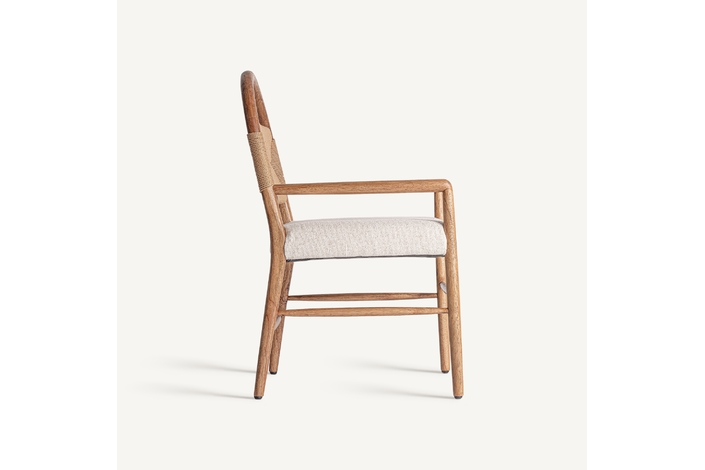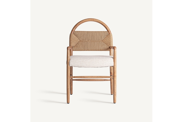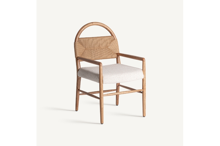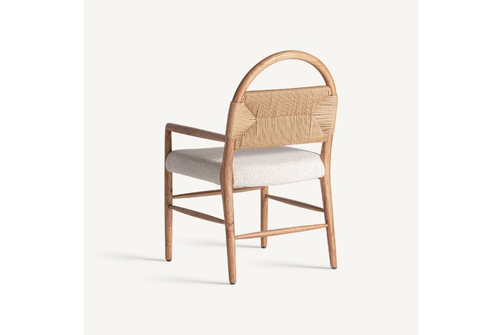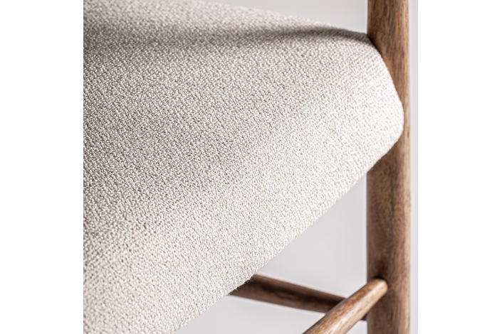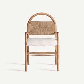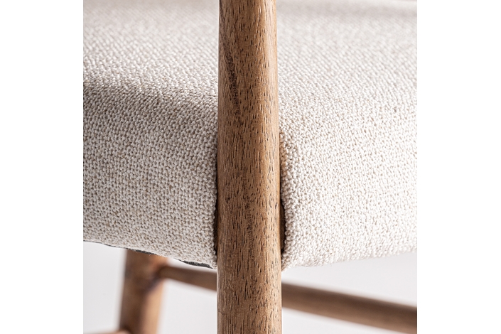 Silla imphy, en color blanco roto, de estilo contemporáneo. Fabricado en poliéster, combinado con madera de caucho y enea.