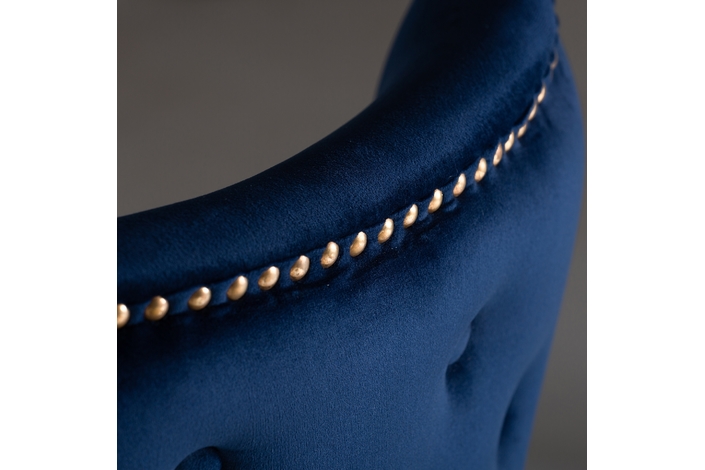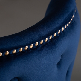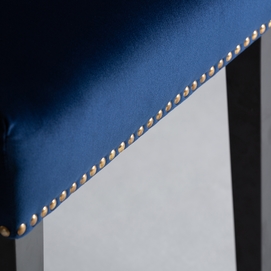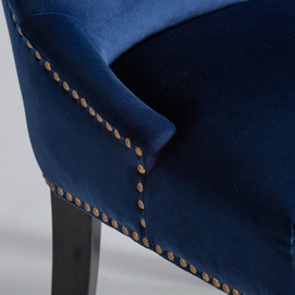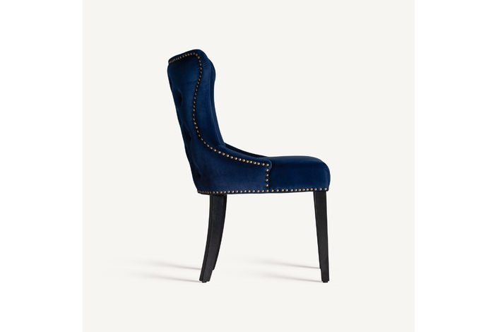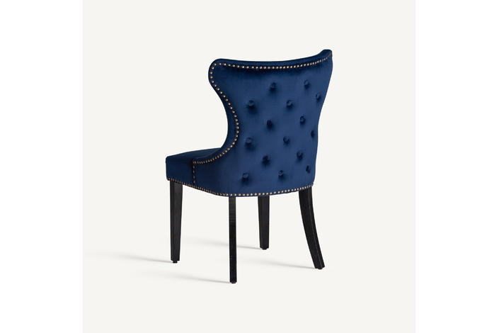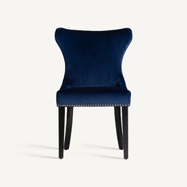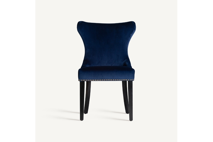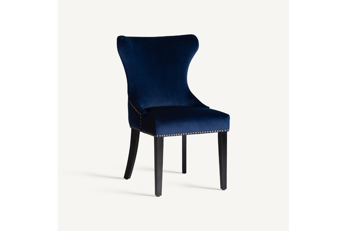 Silla isella, en color azul marino, de estilo clásico. Fabricado en madera de pino, combinado con terciopelo. Producto desmontable.
