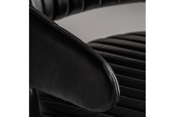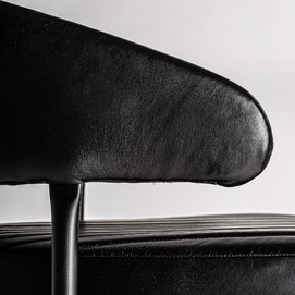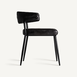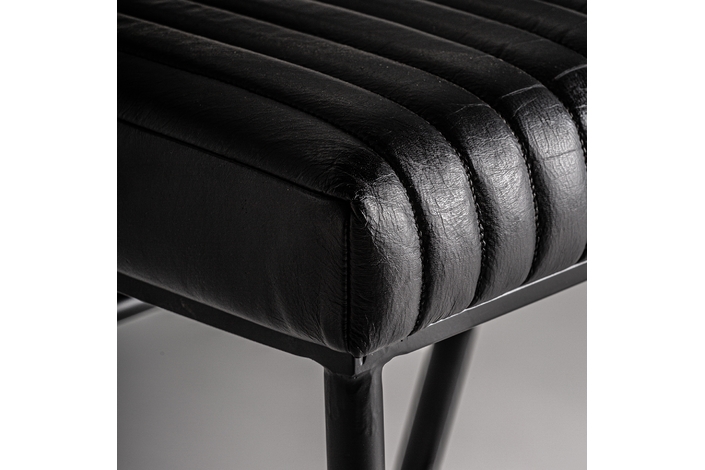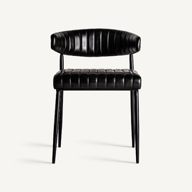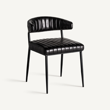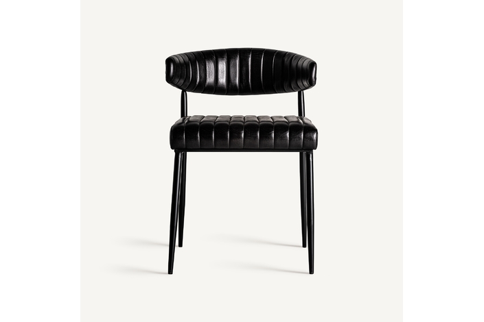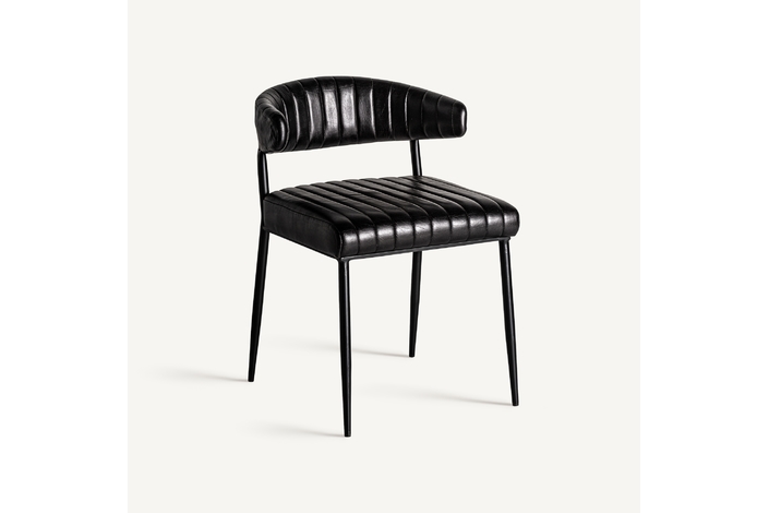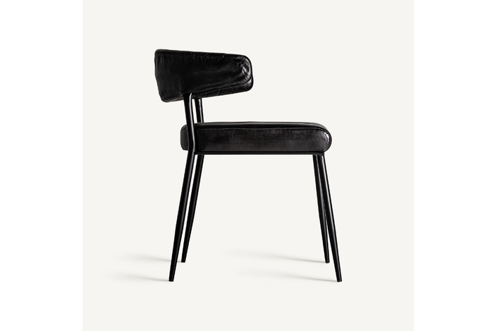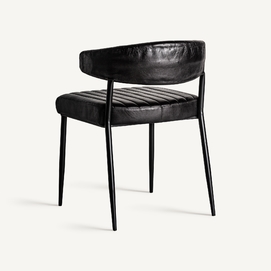 Silla jarpen, en color negro, de estilo vintage. Fabricado en piel, combinado con hierro.