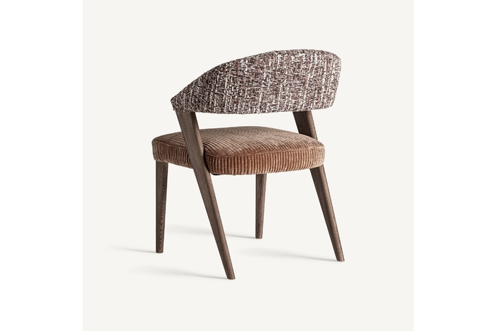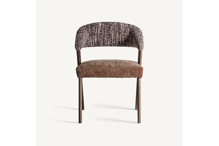 Silla kamenz, de estilo contemporáneo. Fabricado en poliéster, en color ocre jaspeado, combinado con madera roble, en color marrón y madera de caucho.