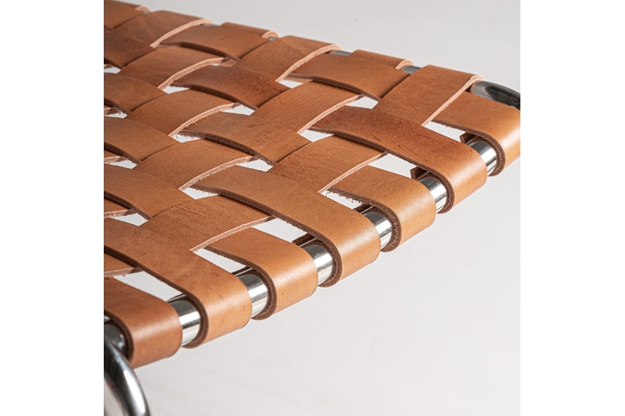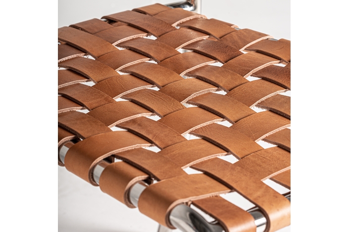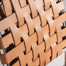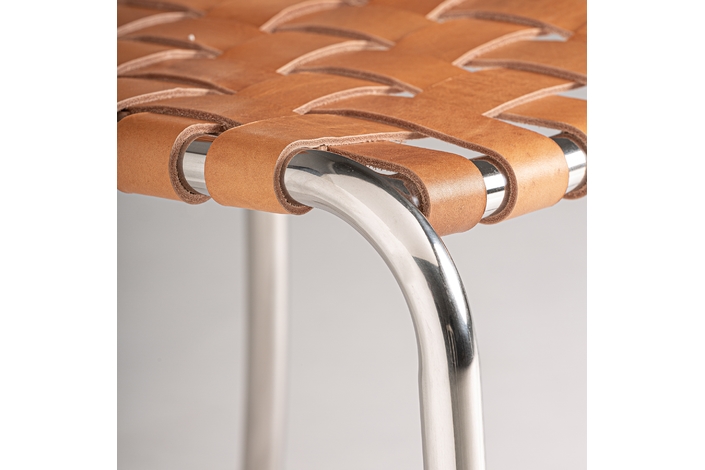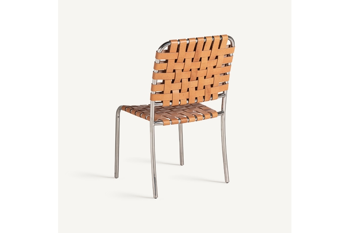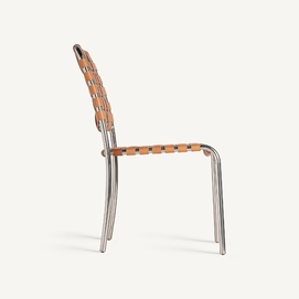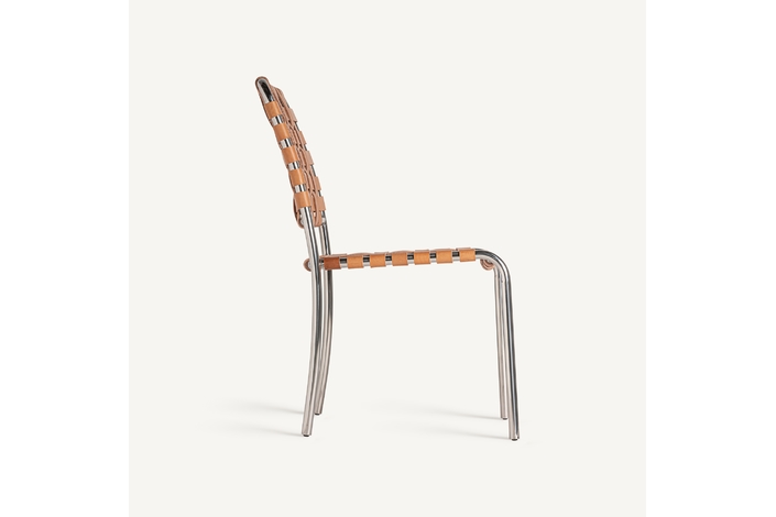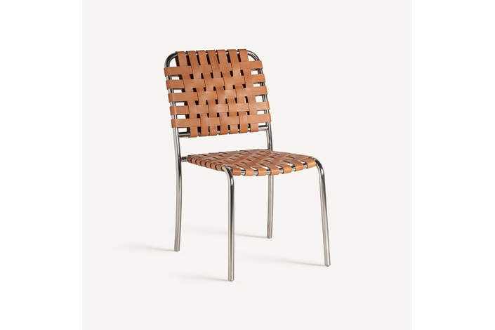 Silla kinloss, en color marrón/plata, de estilo contemporáneo. Fabricado en acero, combinado con piel.