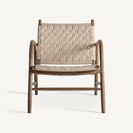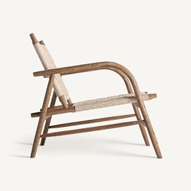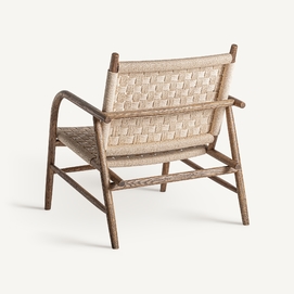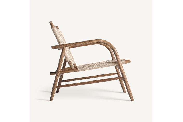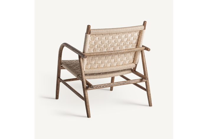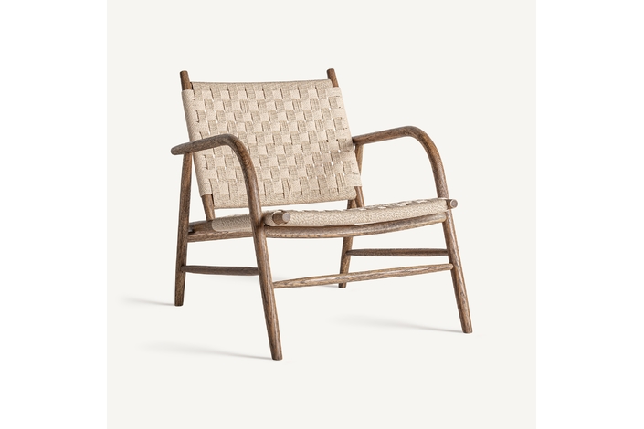 Silla larreule, en color marrón, de estilo boho. Fabricado en madera roble, combinado con cuerda.