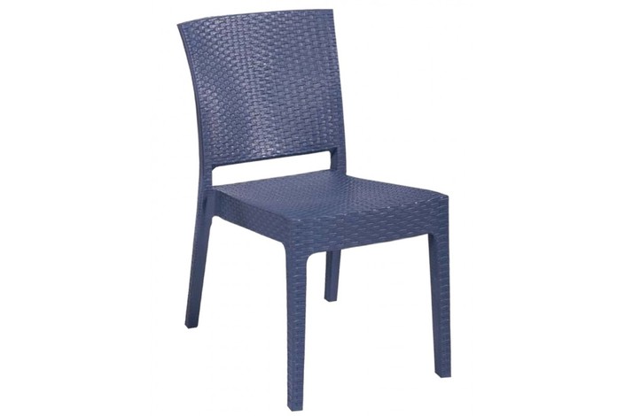 Silla apilable, imitación a ratán, polipropileno gris oscuro. Uso en exterior e interior. Otros colores disponibles. Mesas a juego