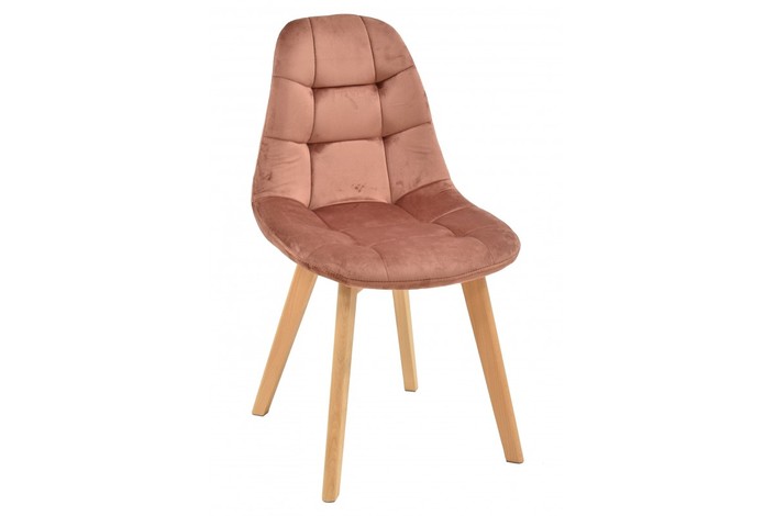 Silla de diseño, multiusos, base de madera, tapizada en tejido velvet rosa coral. Otros colores disponibles.
